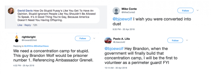 Wolf says that he was inundated with death threats on Twitter. Social media users tweeted that should be “prisoner no. 1” should Pence ever throw gay people in concentration camps. Another individual volunteered himself as a “perimeter guard” at the facility.